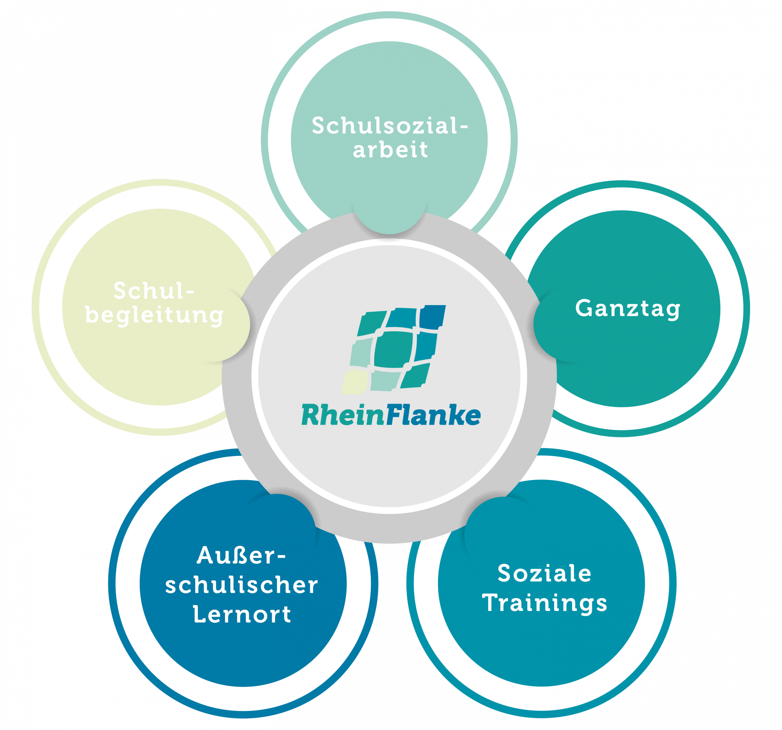 D as Ziel der Arbeit an Schulen ist es, den jungen Menschen, unabhängig von Noten und Leistungen, einen neutralen Raum zu bieten, sie aufzufangen. Dabei sieht sich die RheinFlanke als Kooperationspartnerin die systemisch mitdenkt, die Bedürfnisse der Schülerinnen und Schüler erkennt und Lösungsvorschläge entwickelt. Die RheinFlanke richtet die Angebote anhand des Bedarfs von Schulen aus: Von der Schulbegleitung über den Ganztag und die Schulsozialarbeit bis hin zum Unterrichtsfach Soziales Lernen. Komplettiert wird das Spektrum durch unsere sportbasierten Kompetenztrainings.